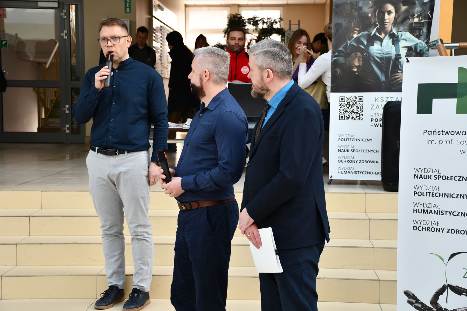 - Targi Pracy i Edukacji to, uważam, wyjątkowe wydarzenie na mapie Suwałk i mapie regionu, ponieważ w ostatnim czasie jest to jedyne, myślę, że największe tego typu przedsięwzięcie w regionie. Dzisiaj u nas gości kilkudziesięciu pracodawców, do tego firmy edukacyjne oraz firmy związane ze szkoleniami. Do tego oczywiście oferta Państwowej Uczelni Zawodowej w Suwałkach, więc chcieliśmy połączyć wszystko, żeby każdy mógł znaleźć coś dla siebie — zarówno osoby chcące się dokształcać, jak i osoby poszukujące pracy. Wiem, że na niektórych stanowiskach dzisiaj firmy mogą nawet przyjmować pierwsze dokumenty aplikacyjne. W targach pracy największa siła tkwi właśnie w tym, że można się bezpośrednio z pracodawcą, czy z działem HR lub kadrami w danym miejscu pracy zapoznać, spotkać i porozmawiać osobiście, a to jest bardzo duża wartość. Mamy służby mundurowe, które również prezentują swoją ofertę. Są tu największe firmy w regionie, najwięksi pracodawcy, więc liczymy na dużą frekwencję. Połączyliśmy ten dzień dodatkowo z Dniem Wydziału Nauk Społecznych, na którym oferujemy trzy kierunki, właśnie ściśle związane z pracodawcami, którzy dzisiaj są tu z nami obecni, czyli bezpieczeństwo wewnętrzne związane ze służbami, logistykę związaną również z tymi firmami oraz administrację. Zaprosiliśmy również młodzież i studentów, którzy będą odwiedzać te stoiska, a także wszystkich mieszkańców regionu - mówił Dawid Harasim, rzecznik prasowy suwalskiej Uczelni.