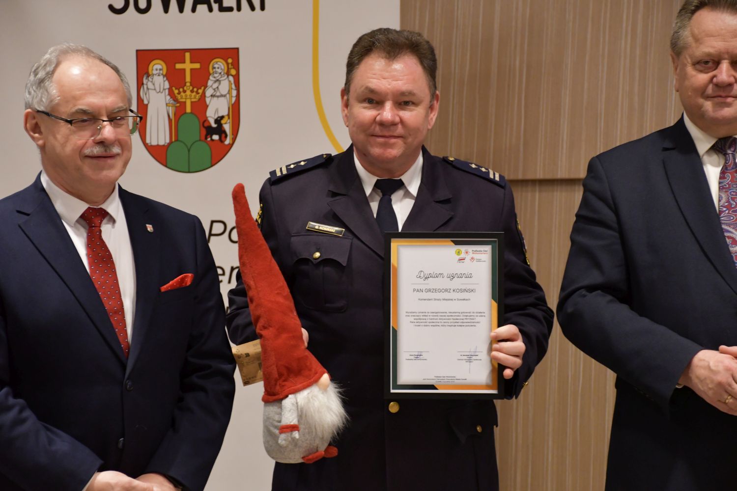- Ten dzień ustanowiono po to, żeby zwrócić uwagę na osoby, które niosą pomoc drugiemu człowiekowi. I schodząc na grunt lokalny, na grunt naszego samorządu, trudno nam wyobrazić funkcjonowanie naszego miasta i tego co robimy, bez tego bezinteresownego udziału naszych mieszkańców - wolontariuszy. Udzielacie się państwo w różnych dyscyplinach, pomagacie nam w realizacji różnych wydarzeń i przedsięwzięć. Jesteście w szpitalu, w hospicjum, w DPS Kalina, na Air Show Odlotowe Suwałki, czy Suwałki Blues Festiwal. Jest też ekipa wolontariuszy sportowych i bez nich byłoby bardzo nam trudno zorganizować wydarzenia naprawdę dużej rangi sportowej, które mamy w naszym mieście. Dzisiaj jest dobry moment, żeby podziękować za tą postawę obywatelską, bo wolontariat towarzyszył człowiekowi od wielu, wielu lat. Jednak dzisiaj, w XXI wieku, kiedy nasza pozycja materialna jest coraz lepsza, wydawać by się mogło, że praktycznie sami powinniśmy sobie radzić, a tu okazuje się, że nie. Że są momenty, są chwile, są takie wydarzenia, gdzie ta pomoc jest niezbędna. I za taką postawę obywatelską, bardzo ludzką, serdecznie wam dzisiaj w imieniu suwalskiego samorządu dziękuję - powiedział Czesław Renkiewicz, prezydent Suwałk.