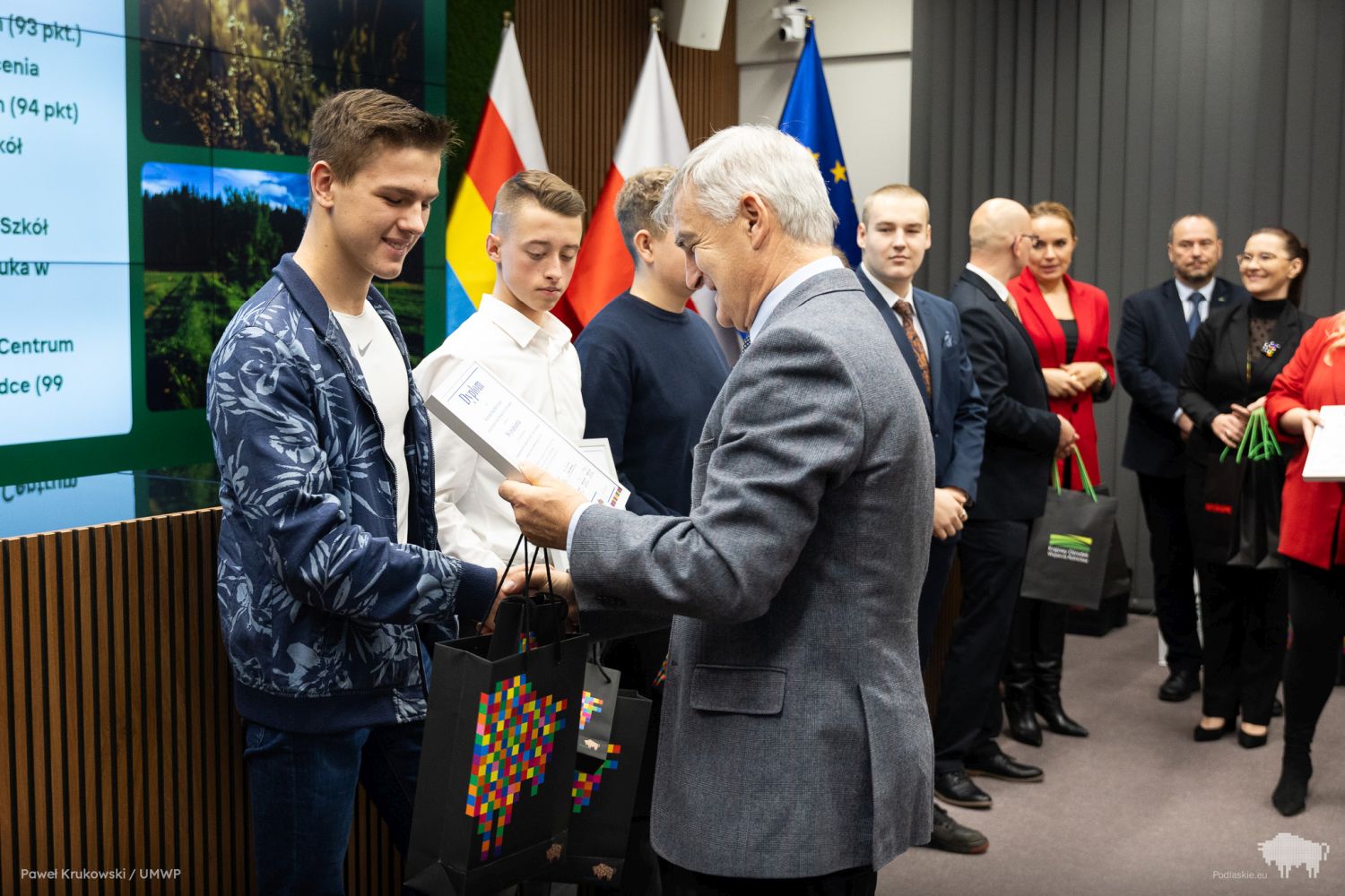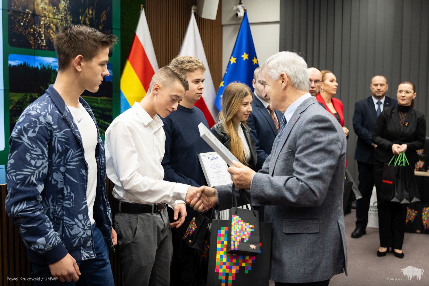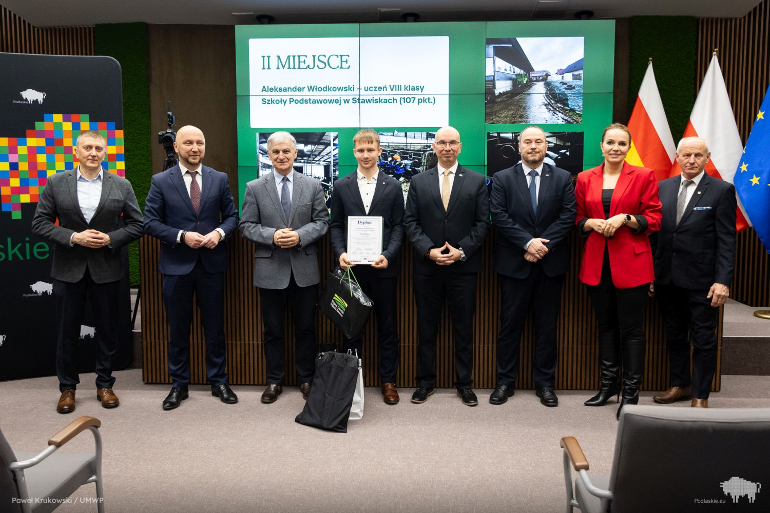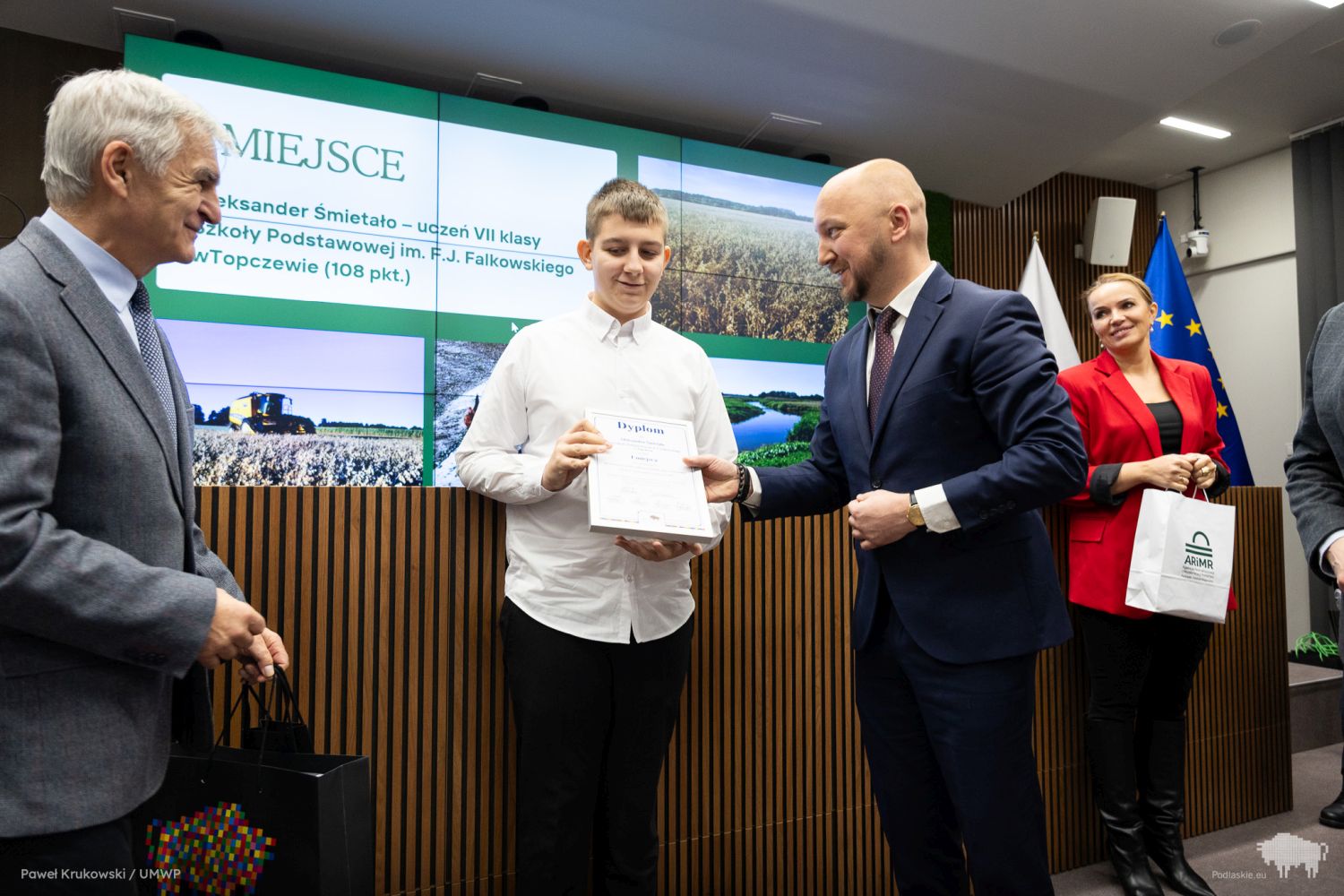 Wszystkich wyróżnionych poznaliśmy w piątek (28.11) podczas finałowej gali w Białymstoku. W wydarzeniu wzięli udział marszałek Łukasz Prokorym oraz członek zarządu Bogdan Dyjuk. Marszałek podkreślił, że mimo młodego wieku uczestnicy konkursu wykazują dużą otwartość na zdobywanie wiedzy o rolnictwie, zarówno w zakresie nowoczesnych technologii, jak i ekologicznych, przyjaznych środowisku rozwiązań. Podziękował także rodzicom i nauczycielom za to, że potrafią zaszczepić w młodych ludziach pasję oraz zainteresowanie tematyką rolniczą.